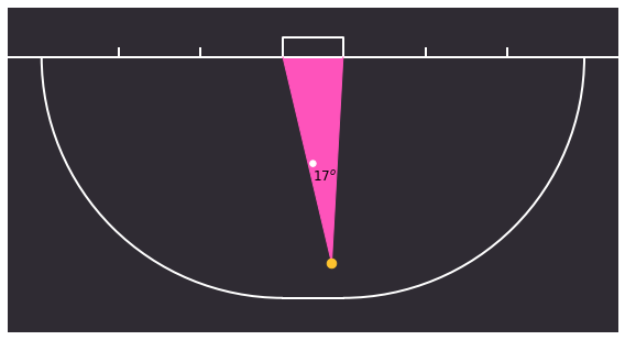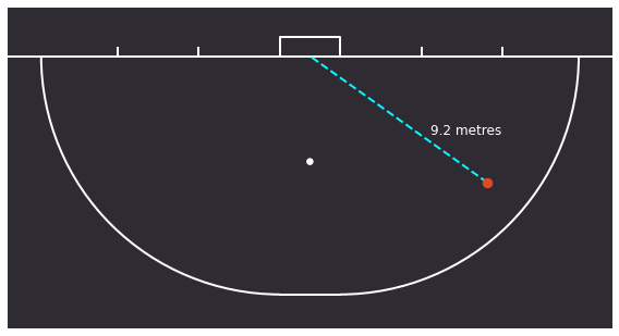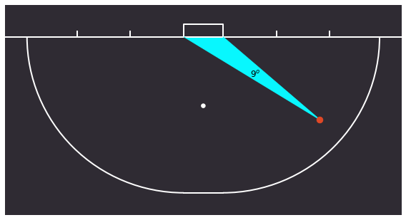 Figure 4: Angle and distance of Boyde’s goal-scoring shot.