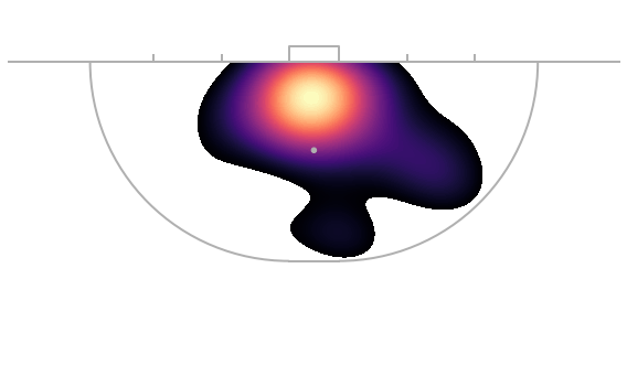 Figure 2: Kernel density plot of ball locations for shot where a field goal was scored.
